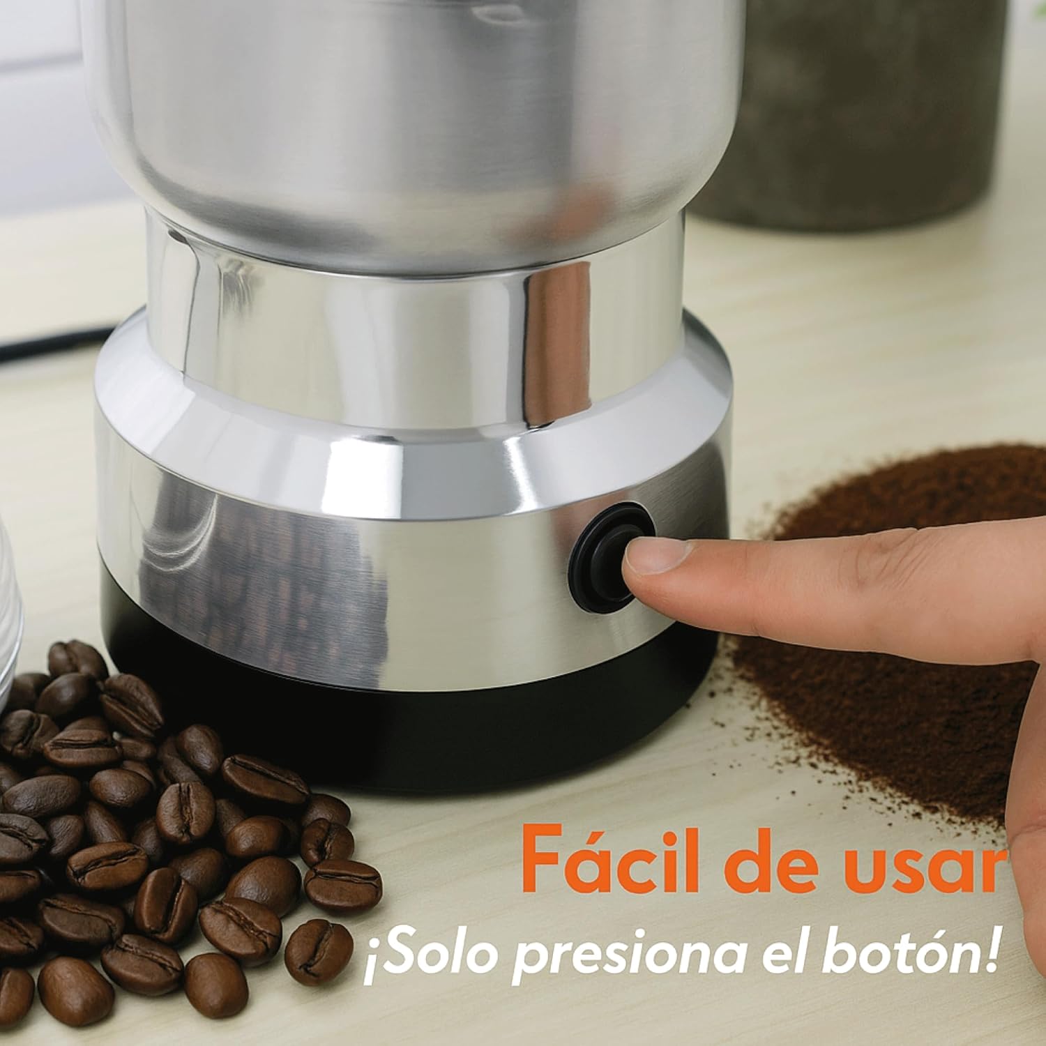 Con solo presionar un botón tendrás molido cualquier tipo de especie, café, frutos secos y muchas más cosas. ¡Dile adiós a los molinillos manuales y descubre la comodidad que este pequeño aparato te puede dar!